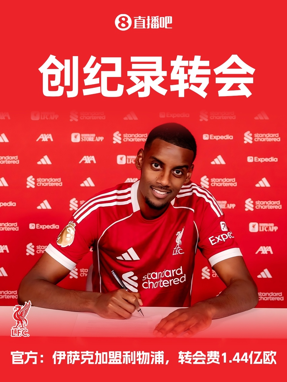 8.夏窗标王!官方:利物浦签下伊萨克,转会费1.44亿欧再破英超纪录